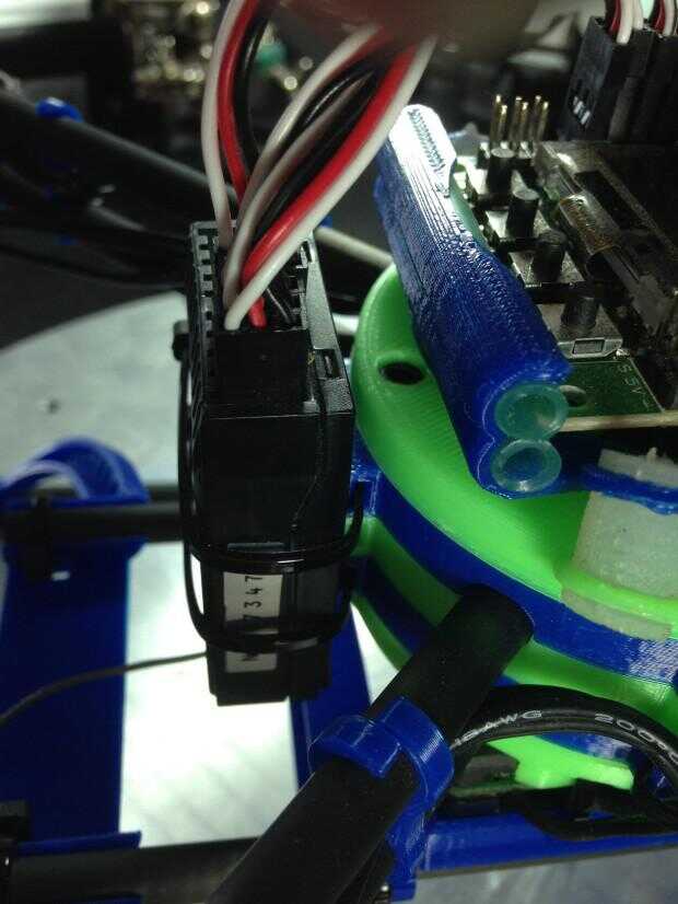 Pase los cables de control de salida a través del centro del soporte del controlador de vuelo y a la derecha, y entonces pueden mover el controlador de vuelo en lugar de la izquierda.