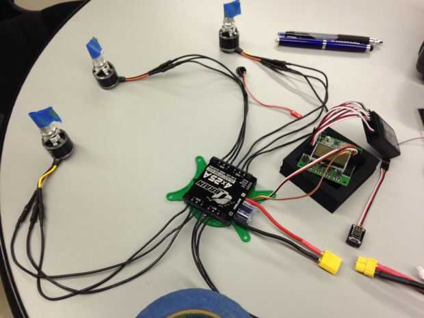 El controlador de vuelo es el centro de la electrónica de un quadcopter, es el cerebro de la operación. La FC tiene varios chips y sensores que recogen e interpretan datos de vuelo, y como recibe las señales de entrada del receptor de radio calcula qué instrucciones para enviar a los CES (el músculo) para obtener los resultados deseados de cada motor. Al conectar la batería a tu cerebro Q, el UBEC a bordo alimente el controlador de vuelo KK, y la Junta KK pasará este poder a través de a alimentación el receptor de radio. Cuando está conectado correctamente, todo debe encender al conectar la batería.