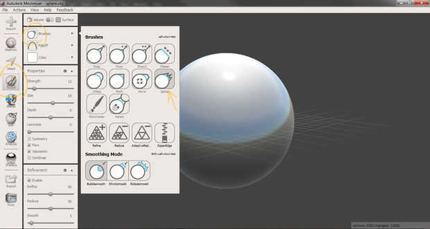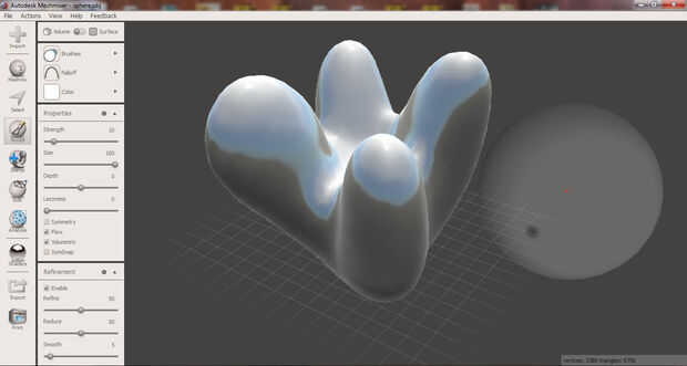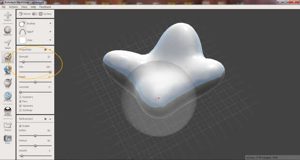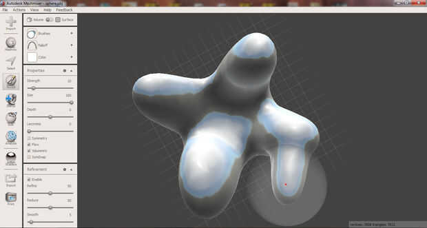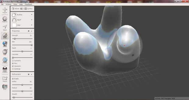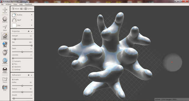 Comience abriendo Meshmixer y haga clic en ámbito de importación. En el menú de la izquierda, haga clic en esculpir > cepillos y elegir los puntos. Comenzar con una baja resistencia y de gran tamaño que comienzan a crecer las bases de sus picos. Las espigas crecen hacia el espectador, así que gira a la vista superior a crecer las púas hacia arriba. Una vez que tengas bases de rama, puede iniciar con un tamaño más pequeño y crecen nuevas ramas de los lados.