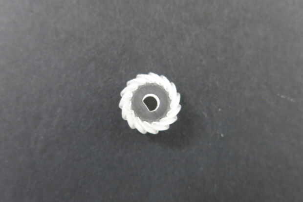 estos son los componentes básicos de un reloj 3D impreso por un 2000 de FDM de Stratasys. La FDM Stratasys trabaja estableciendo "molleras caliente" de plástico ABS y un sacrificio material que puede ser disuelto por el agua. Los fideos caliente