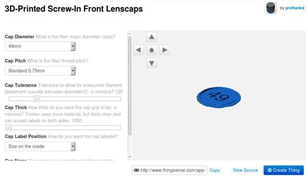 - Tapa de tolerancia: un control deslizante para establecer la tolerancia (espacio vacío) para el hilo; 0 generalmente resultarán en un subproceso que es difícil de tornillo-en la lente, y es fácil de hacer las cosas demasiado flojo, pero de 1/2 que el espesor del plástico extruido es probablemente sobre derecho (125 micras para la extrusión de 0.25mm)