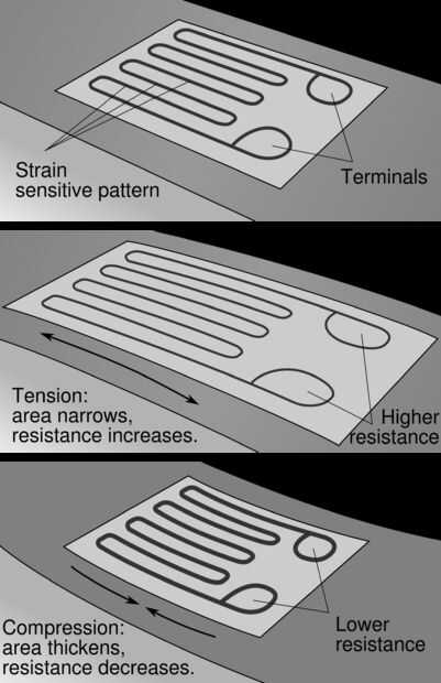 Un medidor de mancha es esencialmente una resistencia plana que se monta directamente en la superficie del metal. Cambia la resistencia cuando el metal se desvía bajo carga. Como se puede imaginar, el cambio eléctrico de resistencia es muy muy pequeño por lo tanto debe ser amplificada antes de que se puede medir directamente por un Arduino. En una célula de carga de la técnica estándar para hacer esto a la tensión del alambre 4 medidores juntos en lo que se denomina una configuración de puente de wheatstone , que convierte minutos cambios en la resistencia a medir pero aún muy pequeños cambios en el voltaje. Este voltaje entonces se amplifica con un amplificador operacional.