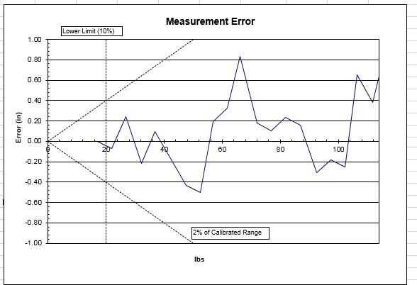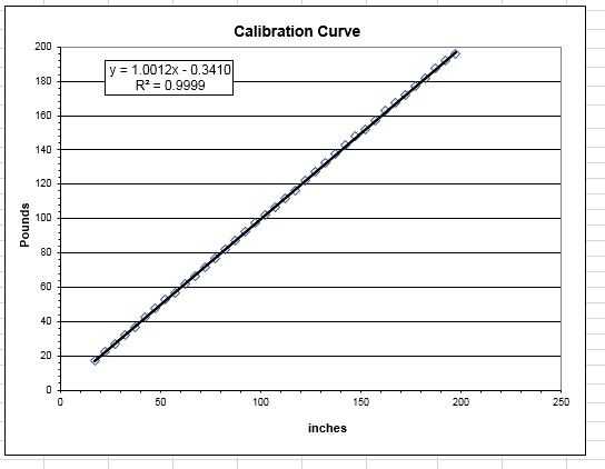 Os adjunto mi calculadora de calibración para este paso para su referencia. También matemáticamente calcula la incertidumbre de las mediciones. (Esto es cómo lejos cada medición del promedio de la gama. Es útil porque algunas células de carga pueden perder linealidad al principio y al final de sus rangos.)