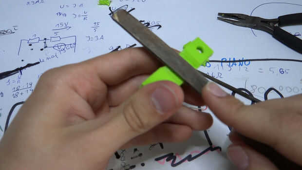 Después de la impresión puede quitar ayudas y moler sus impresiones un poco. Y verifica si tornillos ajuste buenos agujeros, si no se necesitan hacer agujeros más grandes con el archivo. También puede utilizar papel de lija para acabarla o para solucionar errores de impresión.
