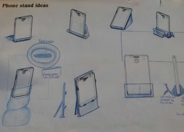 Para ello hice un boceto rápido de mi teléfono en solidworks y entonces cambiaron las líneas en forma de bosquejo. Una vez impreso comencé el trabajo de las ideas. Utilizando un lápiz azul, bosquejado de diferente dibujo y evaluado en mi cabeza por ejemplo, la altura en la izquierda tenía esquina a altos e innecesarios.