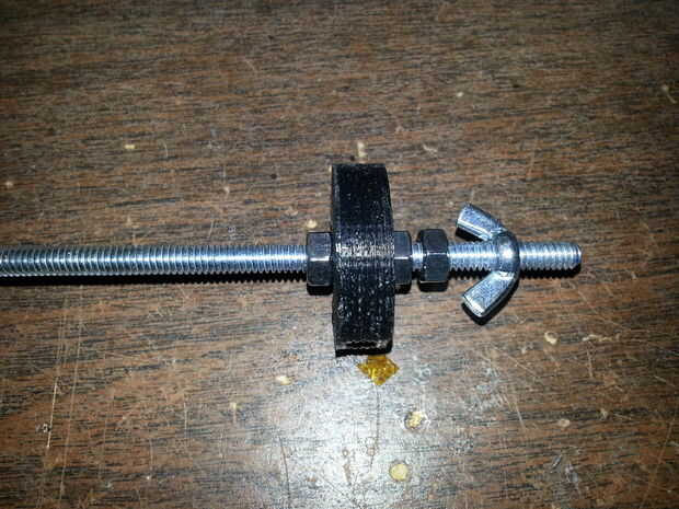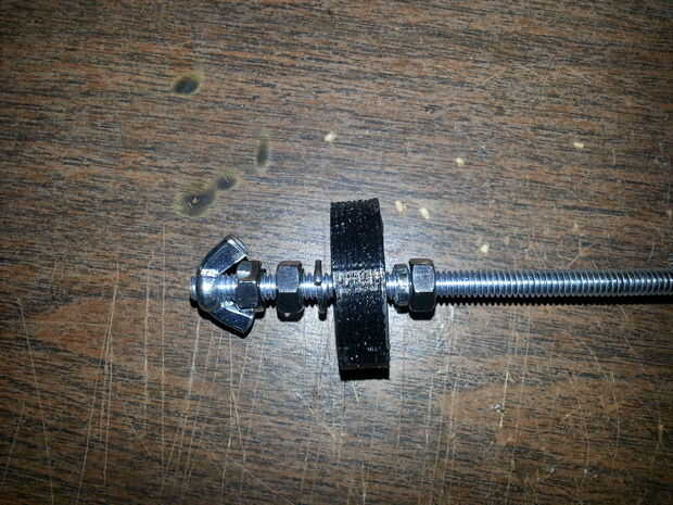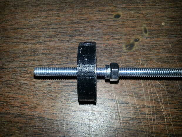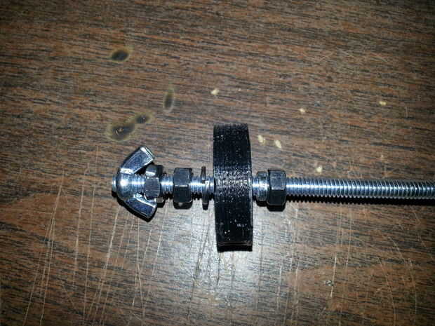 Montar los componentes en el orden que aparecen en la foto. Asegúrese de si usas un rodamiento en el cardan del eje 3, que la varilla roscada gira libremente en el cardán. Además, cuando usted apriete la arandela, cambia la resistencia en el que tarda en girar la varilla roscada.