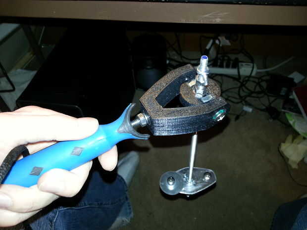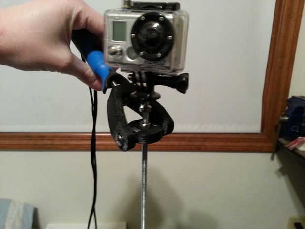 Para sujetar la cámara, usted simplemente Atornille la cámara en el extremo de la varilla roscada. Luego apriete el tuerca de ala en la base de la cámara al revés. Esta es mi cámara agradable un constante, pero he sólo probado en mi GoPro, que tal vez necesite hacer un ajuste de su cámara.