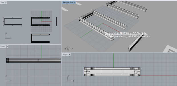 Utilizamos rinoceronte para dibujar un marco 3 lados con perfil de H (que le rodean la parte de acrílico). Tener siempre en cuenta las dimensiones que escogió la parte de acrílico, porque debe caber dentro de este marco. El interior (lado inferior) de la H debería permitir que la hoja de plexiglás de 3 mm se deslice fácilmente en y la parte superior permitiría que el control deslizante de la decoración para entrar (detalles, debajo de este paso).