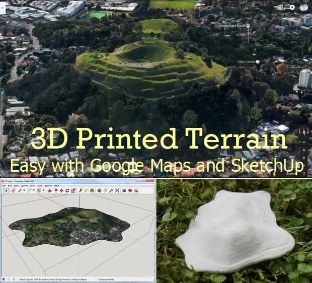TechShopZack hizo un buen instructivo de cómo a impresión 3D los edificios individuales que se pueden ver en google earth, yo quería ser capaz de imprimir los paisajes modelados completamente 3D incluyendo terreno y construcciones. Después de horas foros de la pesca de arrastre y resultados de la búsqueda de google he intentado pantalla 3D capturan programas 3D Ripper DX GL interceptar pero sólo funcionan en versiones antiguas de google earth. Todavía no he sido capaz de obtener los datos 3D de Google maps por lo que yo he colocado un tutorial sobre cómo extraer el terreno por medio de modelado software SketchUp 3D.