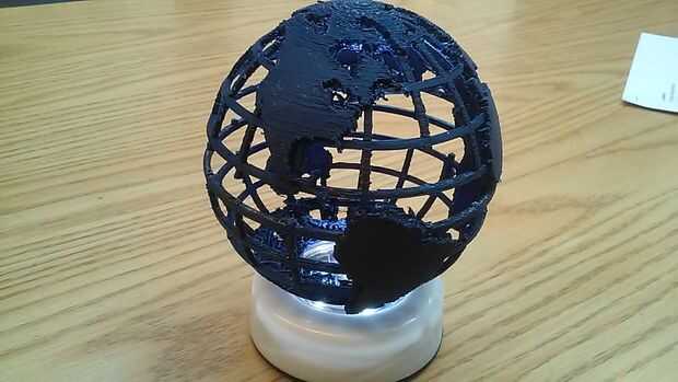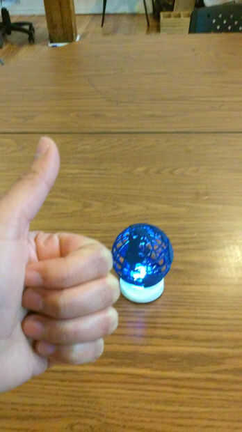 Se trata de una lámpara impresa 3d que parece un globo.La lámpara tiene un diseño de aleta que crea luz y sombra que afectan.Hay agujeros en la parte superior del globo que permiten formas poco de luz para proyectar en el techo.La lámpara se imprime