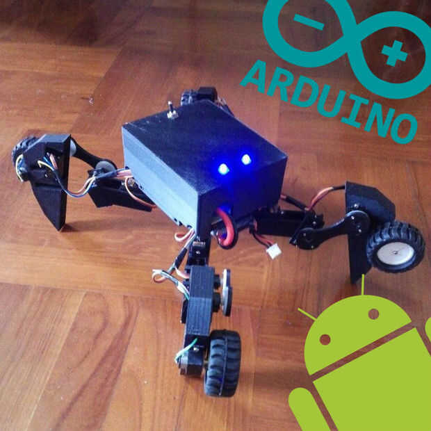 El Spiderbot es una imitación de los "transformadores". Es un robot RC cuadrúpedo y tiene dos modos de operación: araña y vehículo, al igual que los robots de "Transformers". Está basado en Arduino y controlados por teléfono Android mediante Bluetooth. No tiene ningún cálculo cinemática dentro. El robot no pueden reproducirse en todo terreno ya que necesita deslizarse ligeramente. Usted debe comprobar hacia fuera la demostración de video de Youtube primero!