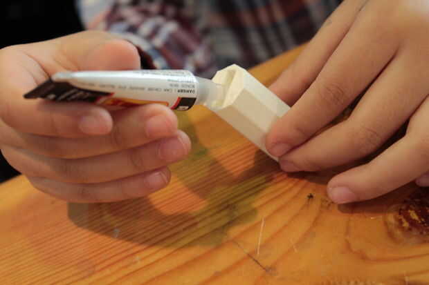1. Con Super Glue, añada unas cuantas gotas en el orificio hecho en la carcasa.