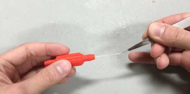 Utilice las pinzas de punta fina para agarrar la punta de la cola del cheque. Tire de él y lejos hacia fuera como se puede cortar con tijeras al ras. Tenga cuidado de no cortar la bola.