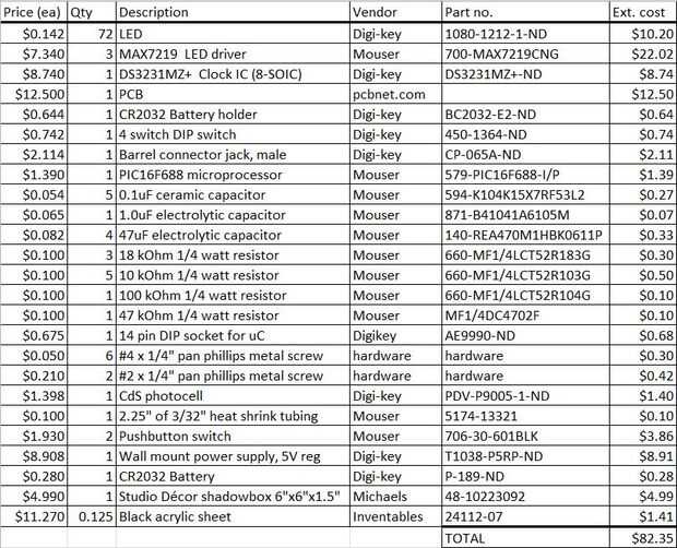 The initial project, and certainly the one to which many were inspired is that of Doug Jackson.también se inspiró enhttp://www.highonsolder.com/blog/2011/1/8/Arduino-Word-Clock.htmlPaso 1: Los materiales La lista de materiales para la Junta depende d