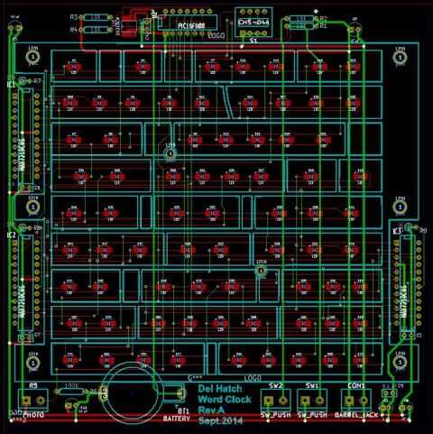 Uso de KiCad, esto no es demasiado difícil. Tenga en cuenta que he añadido una serigrafía de la parte trasera como una "tarjeta de Navidad" que puedes ver si abres la parte de atrás del reloj.