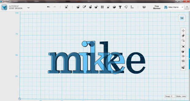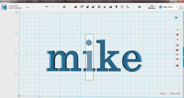 Navegar por la vista en algún lugar por encima de las letras extruidas, mirando hacia abajo en el texto.
