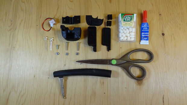 Harto de andar a tientas alrededor en la oscuridad cuando conseguir mi bici de o volverla a la vertiente decidí que necesitaba una antorcha montada casco. Disponible en el mercado los todos parecen complicadas o mal asegurados al casco. Cachondeo sob