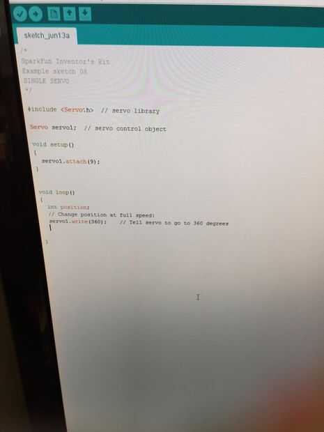 2. Tire hacia arriba el programa de arduino y escriba en el código que se encuentra arriba para ajustar el servo para girar.