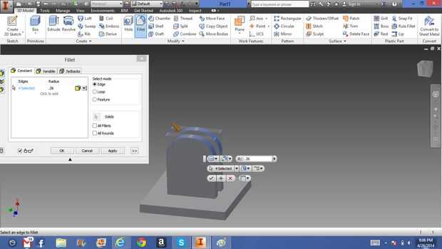 A continuación, filete de las esquinas de los dos mejores de cada rectángulo por 0,26"