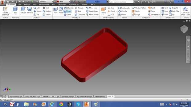 Encontrar el radio filete de tu modelo de Iphone en línea (para Iphone 4/4S:.375), entonces el cuerpo sólido de la caja del teléfono con un grosor de la cáscara. 06".