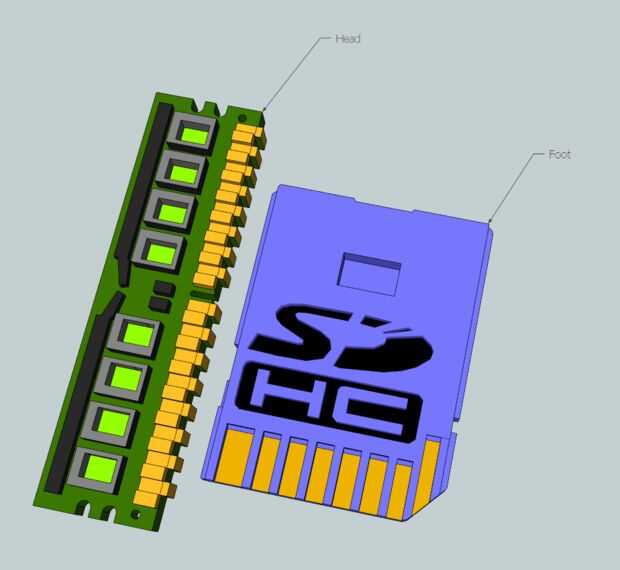 Impresión de 1.) el "HeadAndFoot" para el palillo de la memoria RAM de 8 GB y tarjeta SD