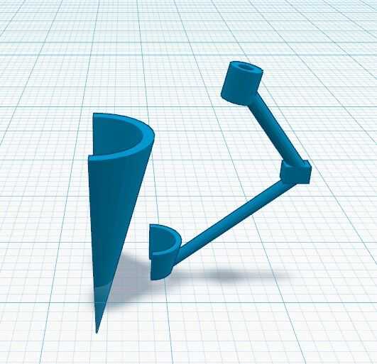 La otra mitad del cono es la única parte del mecanismo del asa que está conectado a las secciones de tubo. Debe fijarse con una pequeña bisagra de metal y algunos tornillos. La pieza del cono está conectada a la manija de la manija angulosa sección que utiliza el apalancamiento de las secciones del mango largo para abrir desde el tubo principal. La parte superior de la palanca con el extremo del mango tiene una esfera semi para conectar el resorte a la sección del tubo, creando fuerza para cerrarla. La sección de manija angulosa que se conecta a la pieza del cono se sujeta con pernos y las secciones de extensión de la manija pueden ser sostenidas con pernos así.