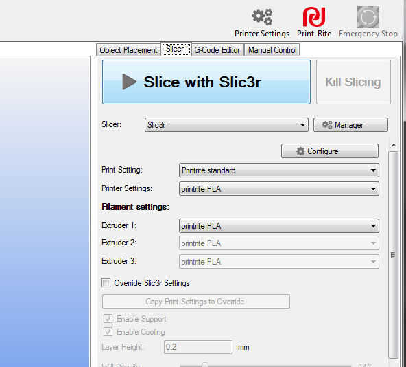 Haga clic en la pestaña de Slic3r más también la derecha haga clic en el segmento con el Slic3r botón para generar el código G.