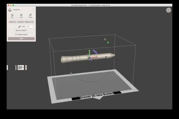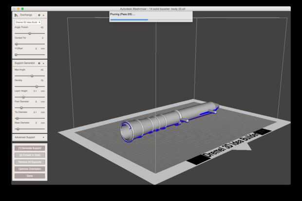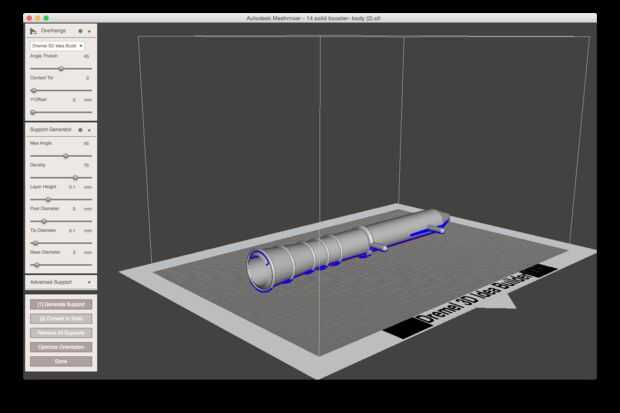 He utilizado Meshmixer para preparar mis archivos para impresión porque te da mucho control sobre el modelo mientras que proporciona por defecto útiles que usted puede modificar ligeramente para obtener los resultados que desea. MeshMixer tiene ajustes de carga para el constructor de Idea Dremel (volumen de acumulación, etc.) que le ayude a posicionar su modelo y crea estructuras de apoyo. Estos son los pasos para preparar un modelo para la impresión.