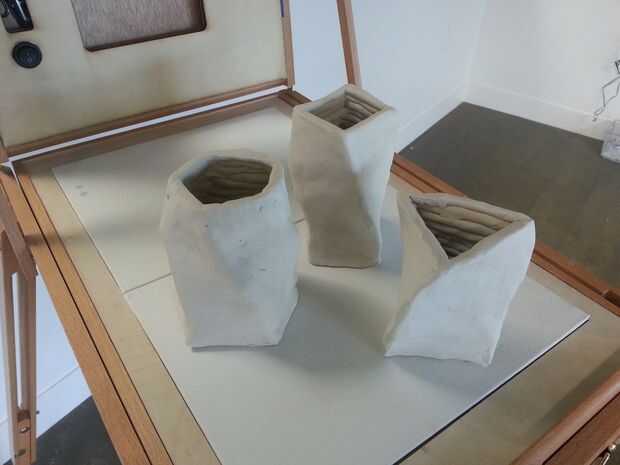 Para crear los modelos en este instructable y video, utilicé una técnica de la bobina de la arcilla . Usé "B-Mix" cono 10 arcilla de la Laguna . Me lió la arcilla en bobinas que fueron entre 5 y 10mm de diámetro. Mientras seguía el punto del láser, agregar bobina encima de la bobina, yo Presione la bobina hacia abajo y liso en el resto de las bobinas previamente colocados. Elegí alisar las caras exteriores y dejar las caras interiores unsmoothed para poner de relieve la naturaleza capas del proceso de construcción.