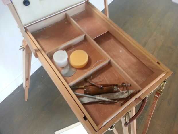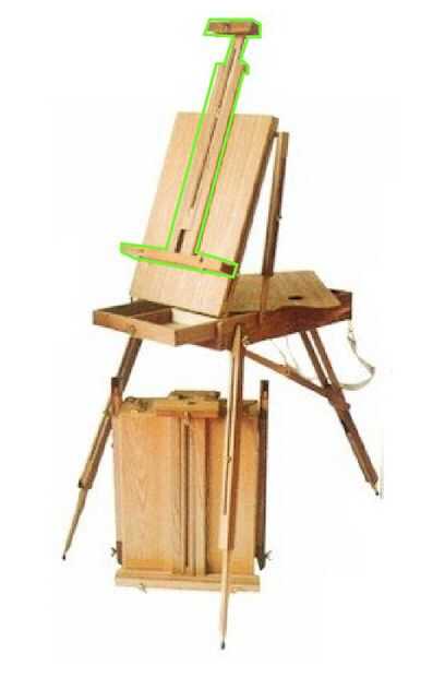 • Quitar la parte de la base que se pretende apoyar el lienzo, en verde arriba. Esto es tan sencillo como Desenroscar el hardware.