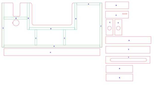 • el pdf adjunto tiene dos capas: las marcas rojas son las líneas de corte. La capa con etiquetas azules y verdes pretende ayudar a con el conjunto, no deben cortarse.