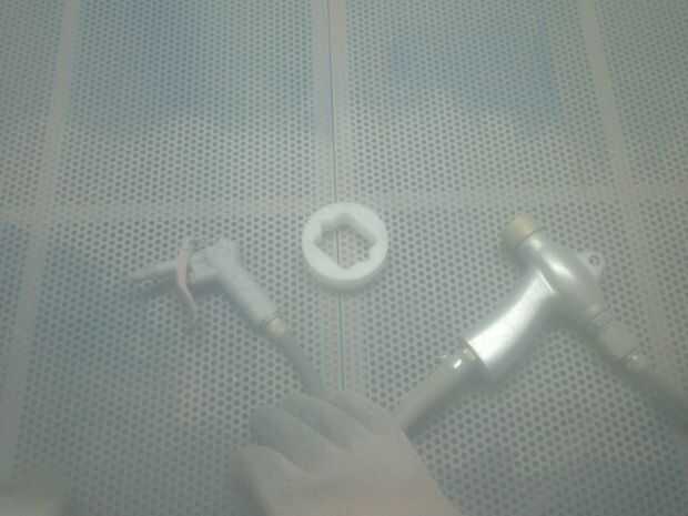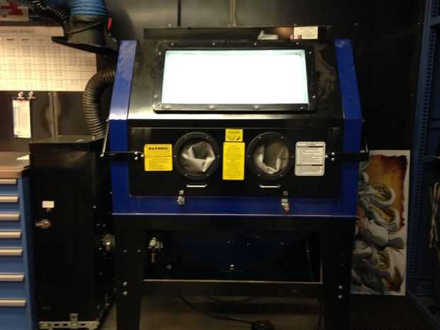 Después con chorro de arena las piezas con media granate de grano 120, fueron lavadas con agua y jabón y secarse con aire comprimido después de un cacheo con una toalla de papel. Secado al aire ambiente dio lugar a manchas en la superficie.