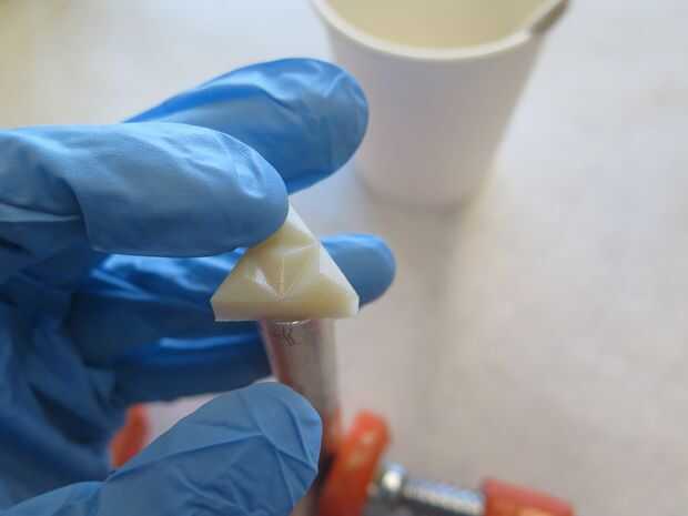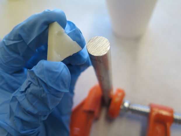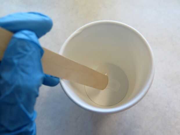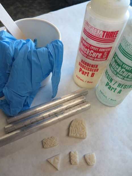 Con guantes, exprimió partes iguales de mi epoxy de dos componentes en un recipiente y los mezclan.