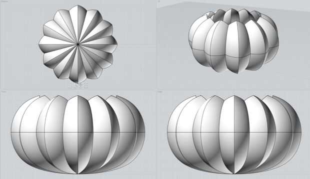 Utilizando un programa de CAD (uso MoI3d) hacer un modelo del objeto que desea volver a crear con un molde. Específicamente recomiendo usar este proceso para objetos radialmente simétricos que requieren que las piezas del molde que son copias exactas unas de otras.