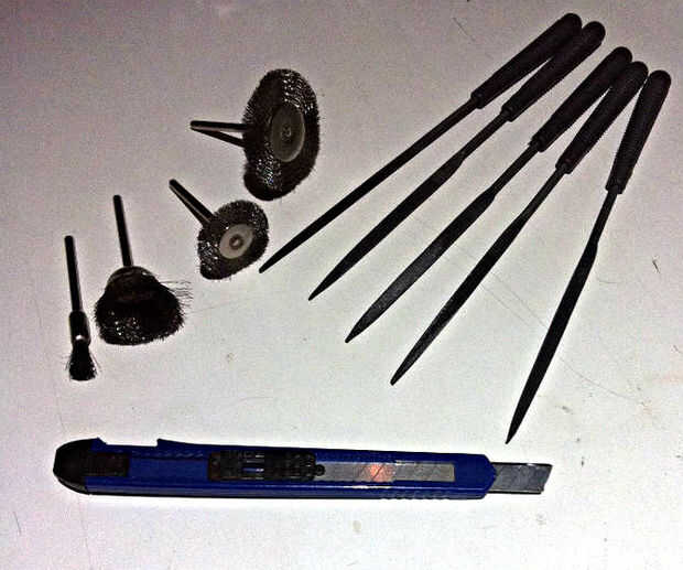 Me gustaría sugerir algún tipo de cepillo de alambre para una herramienta giratoria. El cepillo puede ser de acero inoxidable, latón o incluso nylon. Esto es para limpiar las piezas después de la impresión.