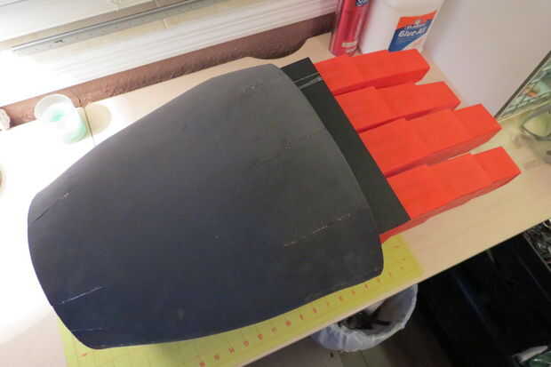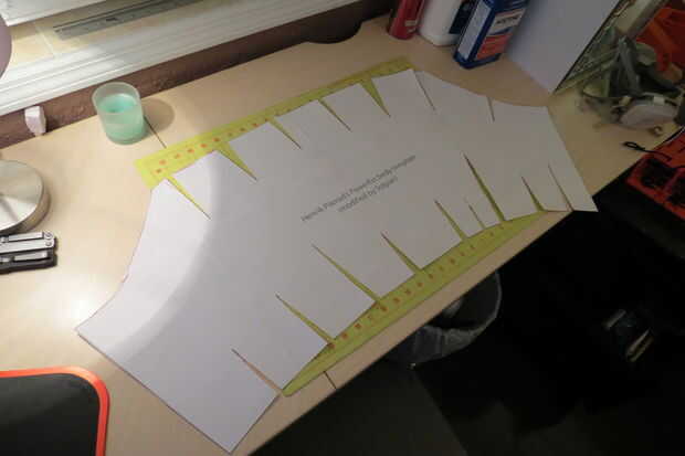 Para esto que usé a la misma espuma se hizo el resto de mi armadura de poder de. Con la ayuda de algunas fotos tomadas por mi hombre Henrik, hice un patrón y había escalado al tamaño. Una vez fue caliente pegado en forma, hice una prueba con el torso superior de mi traje.