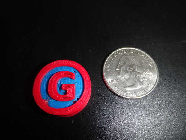 Se trata de una pieza de juego personalizada de 2 colores. Fue diseñada en Autodesk Inventor 2013, importado a Makerware e impreso en la Makerbot Replicator 2 x uso de plástico ABS.