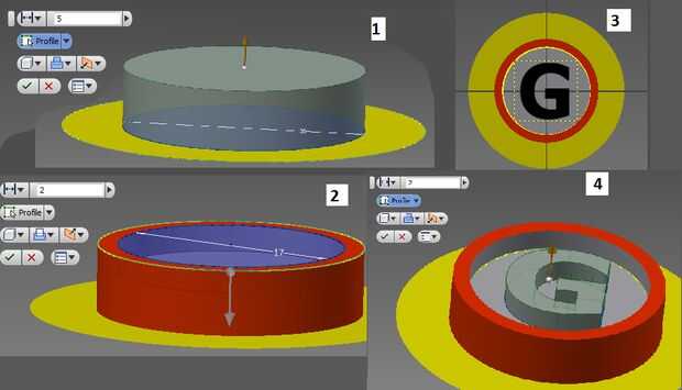 1) dibujo un círculo en la base con el punto de origen como su centro, saca.