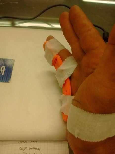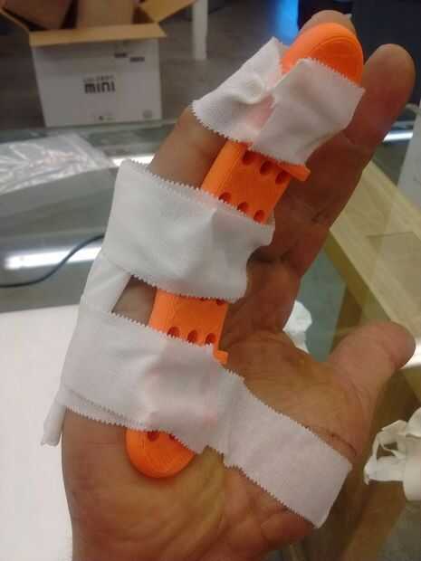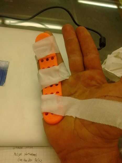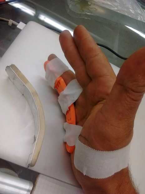 ~ 32 minutos más tarde, apareció mi férula-ser la placa de la construcción, había doblado en forma y dijo adiós a la marcha del hospital de espuma mohoso.
