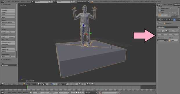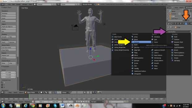 4. Ahora haga clic derecho sobre la malla para seleccionarlo y haga clic en la pestaña de "Modificadores de objeto" a la derecha de la pantalla (indicada por la flecha naranja).