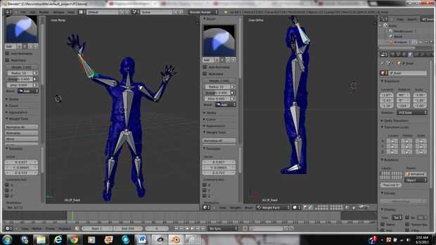 -Si pulsas en la tecla "g" mientras que un hueso se ha seleccionado, usted será capaz de ajustar la posición de la malla, que el hueso seleccionado (como indica la imagen 3).