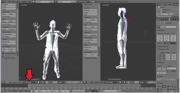 2. en la pestaña indicada por la flecha roja, seleccione la opción "Modo de Pose".