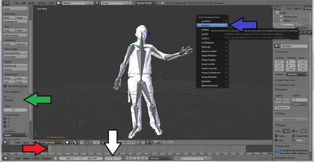 3. cambiar la posición de la malla para el marco siguiente (en mi caso ya que mi malla está agitando, ajusté la rotación del hueso del brazo superior, para obtener ángulos exactos de la rotación hace clic en la pestaña de "Rotar" indicada por la flecha verde).