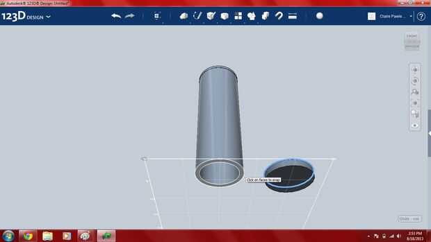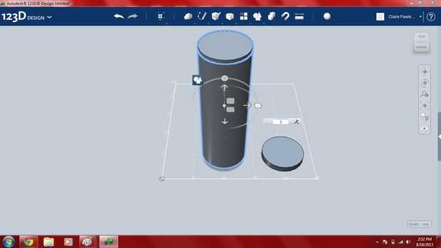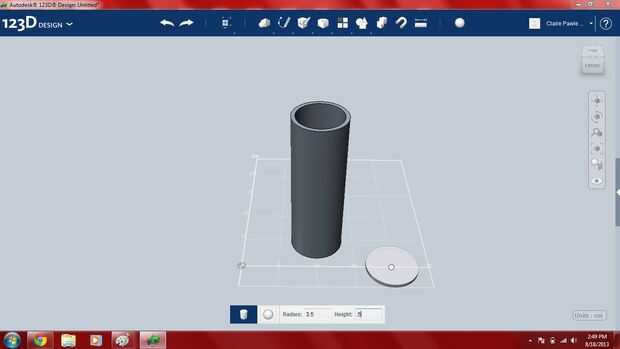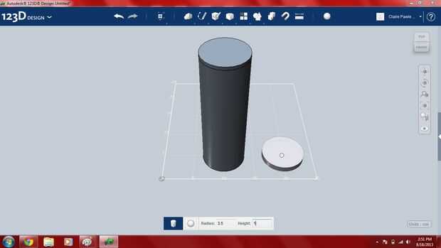 3) crear otro cilindro con el mismo radio de 3,5 cm y una altura de 0,5 cm