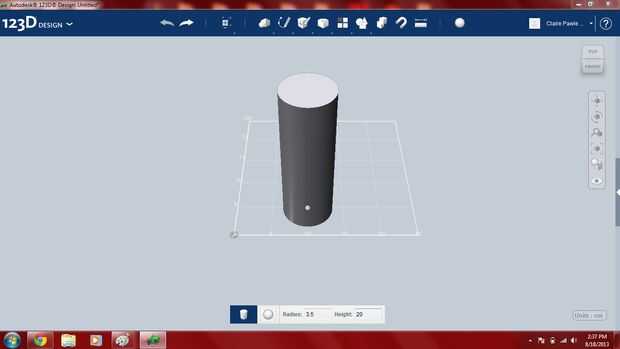 1) crear un cilindro a partir de las formas primitivas que tiene un radio de 3,5 cm y una altura de 20 cm