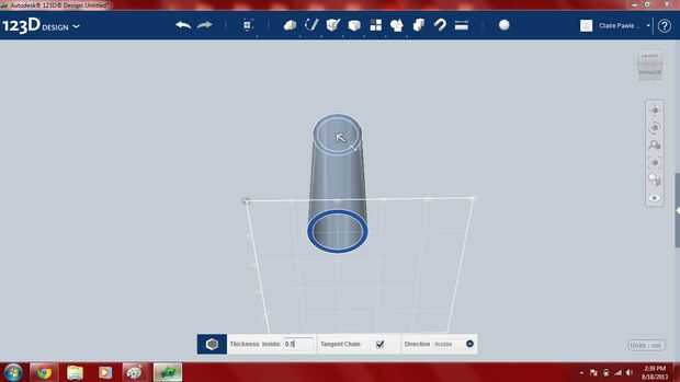 2) Utilice la herramienta shell para ahuecar el cilindro seleccionando bases superior e inferior con la tecla Ctrl. Hacer el grosor 0.5 cm