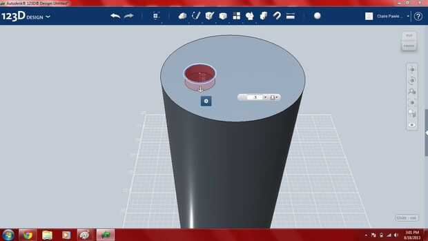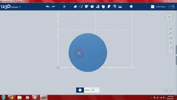 1) crear un círculo en la parte superior del cuerpo por lo menos un cm, con un radio de 0,75 cm