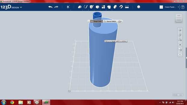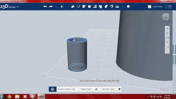 5) Utilice la herramienta shell para ahuecar el cilindro mediante la selección de la parte superior en inferior de bases con la tecla Ctrl. Hacer el grosor 0,25 cm
