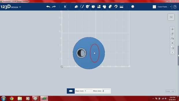 8) crear una elipse en la parte superior del cuerpo, con un major axis de 1 cm y un eje menor de 2 cm