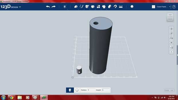 4) crear un cilindro con un radio de 1 cm y una altura de 3 cm